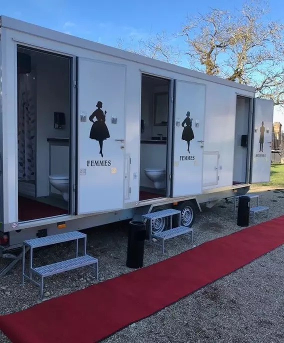 Langlois Réceptions vous propose la location d’une caravane sanitaire autonome avec deux WC, deux urinoirs et un lavabo pour vos événements privés ou professionnels de 300 personnes maximum.